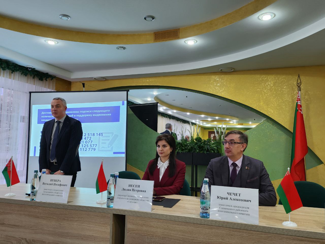 Он вместе с заместителем председателя Слонимского РИК Юрий Алексеевич Чечет обсудили с коллективом особенности социально-экономического развития Слонимского района и региона в целом, а также в связи с предстоящими выборами, напомнили слонимчанам, что участие в выборах – это не только право, но и гражданский долг каждого.