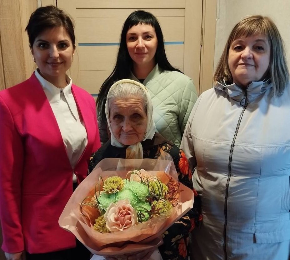 Торжественно поздравили со значимым юбилеем уважаемую жительницу нашего района: председатель районного совета ветеранов Вячеслав Алексеевич Хвесько, военный комиссар Слонимского и Зельвенского районов Артём Дмитриевич Трубников, представители ЦСОН Слонимского района во главе с директором Светланой Яковлевной Скоморох и работники СТ ОАО «Світанак» во главе с директором Лилией Петровной Несен.